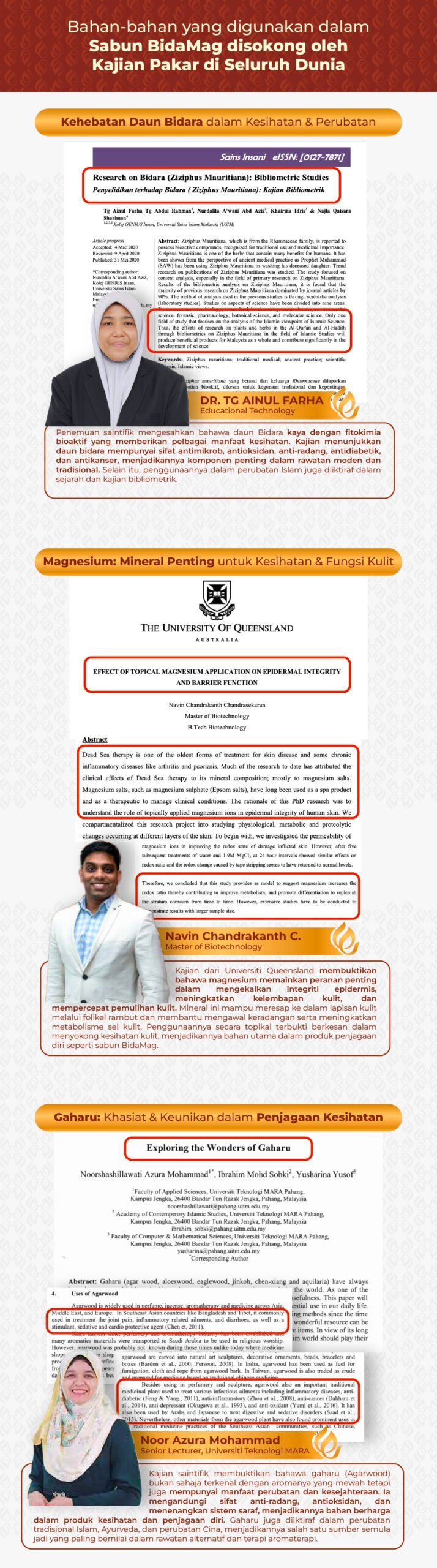 Semua Bahan Yang Digunakan adalah Herba Natural Dan 100% Selamat. Sabun Bidamag tidak berbahaya pada kulit & badan seperti produk yang lain.